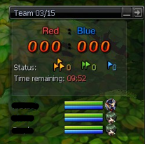 After registering, players will be split into two teams : Red and Blue. Each team can have up to 3 players. You can see on the scoreboard the current scores of each team, the status of each crystal, the time remaining before the end of battle and your team mates.