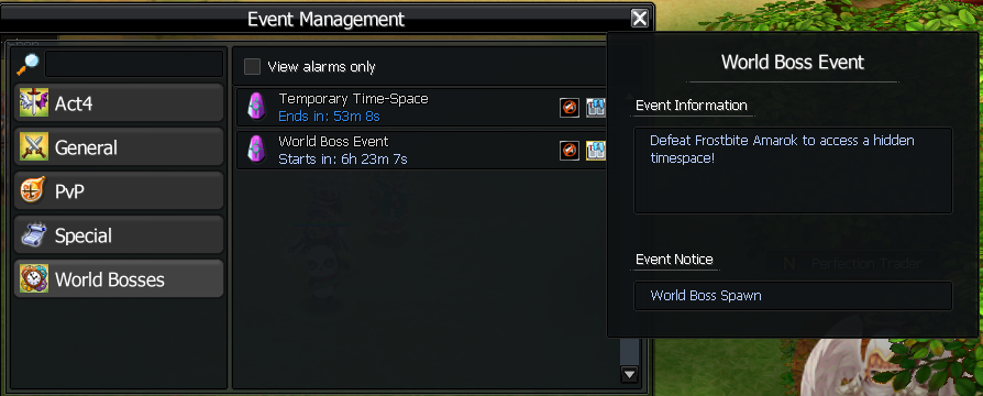 Check the Event Manager for schedule and upcoming bosses: